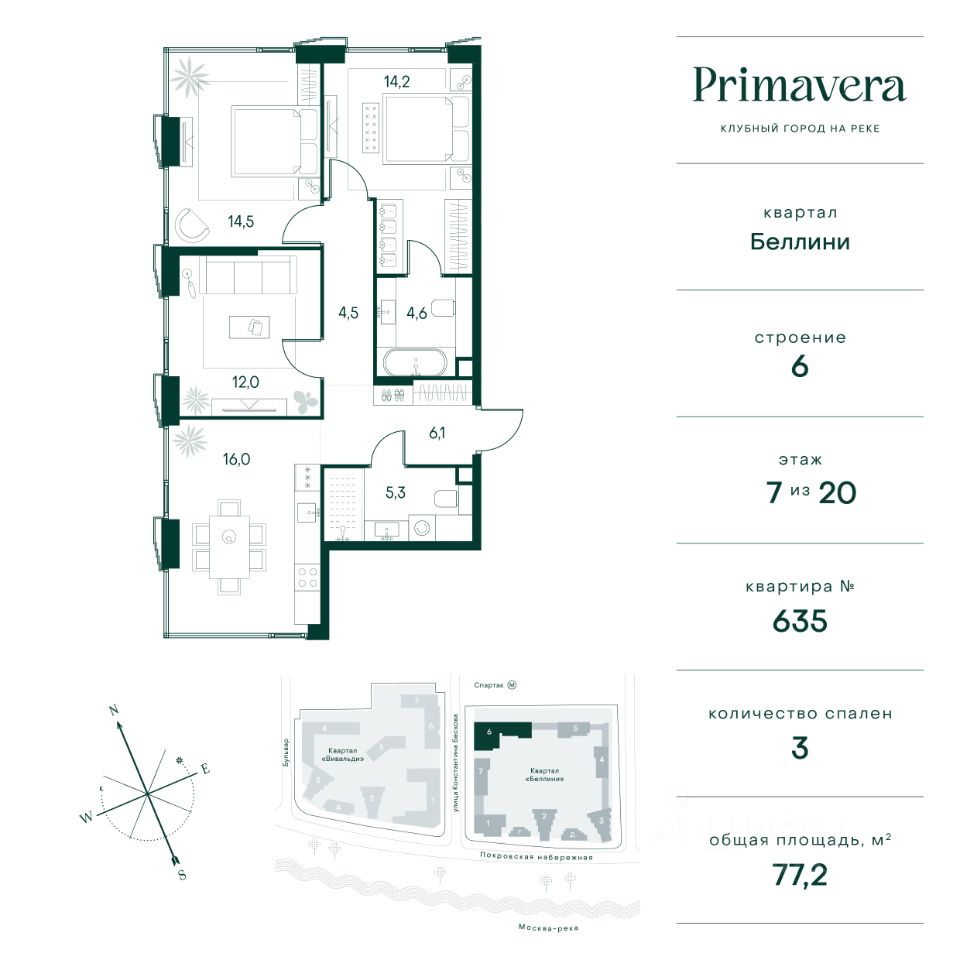 Клубный город на реке Primavera — это респектабельный проект премиум-класса на первой береговой линии Москвы-реки в экологически безупречном районе — Покровское-Стрешнево. Под панорамными окнами квартир расположился собственный экопарк, площадью 12 гектаров с сетью прогулочных дорожек, оборудованный детскими и спортивными площадками, а за ним набережная с собственным пляжем и зонами отдыха. Клубный город на реке Primavera предлагает впечатляющий выбор планировок для любого жизненного сценария: от просторных однокомнатных квартир до пентхаусов и квартир с видовыми террасами или патио. Выбирайте из 120 вариантов эргономичных планировок стандартного и евроформата. В проекте доступны квартиры площадью от 40 до 209 м², в каждой из которых открываются непревзойденные виды на реку, а угол обзора составляет 270 градусов. Из дизайнерских лобби открывается панорамный обзор на зеленый благоустроенный двор. Статусное мебелирование, потолки высотой 6 м и комфортная лаунж-зона отсылают к стилистике высококлассных пятизвездочных отелей. В Primavera есть все, что может предложить мегаполис, здесь все сосредоточено вокруг вас и настроено на ваши желания: - Всестороннее детское развитие в паре шагов от дома: 4 школы, 8 детских садов, развивающие центры с кружками и секциями. - Комфорт мегаполиса на расстоянии приятной прогулки: супермаркеты, кафе, рестораны с верандами на крыше, салоны красоты, аптеки, компании сферы услуг, многофункциональный центр для шоппинга и развлечений. - Умный дом: автоматизированное бесконтактное управление основными системами доступа, инфраструктуры и безопасности через мобильное приложение и специальные метки. Клубный город на реке Primavera выгодно отличается близостью к природе, совмещенной с насыщенной инфраструктурой.