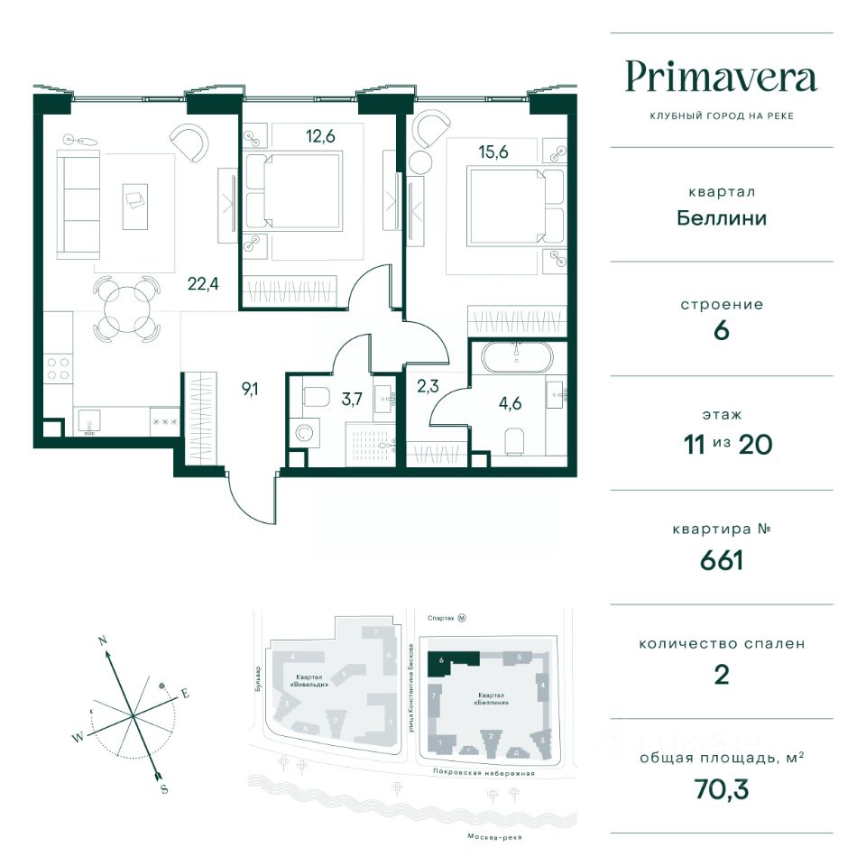 Клубный город на реке Primavera — это респектабельный проект премиум-класса на первой береговой линии Москвы-реки в экологически безупречном районе — Покровское-Стрешнево. Под панорамными окнами квартир расположился собственный экопарк, площадью 12 гектаров с сетью прогулочных дорожек, оборудованный детскими и спортивными площадками, а за ним набережная с собственным пляжем и зонами отдыха. Клубный город на реке Primavera предлагает впечатляющий выбор планировок для любого жизненного сценария: от просторных однокомнатных квартир до пентхаусов и квартир с видовыми террасами или патио. Выбирайте из 120 вариантов эргономичных планировок стандартного и евроформата. В проекте доступны квартиры площадью от 40 до 209 м², в каждой из которых открываются непревзойденные виды на реку, а угол обзора составляет 270 градусов. Из дизайнерских лобби открывается панорамный обзор на зеленый благоустроенный двор. Статусное мебелирование, потолки высотой 6 м и комфортная лаунж-зона отсылают к стилистике высококлассных пятизвездочных отелей. В Primavera есть все, что может предложить мегаполис, здесь все сосредоточено вокруг вас и настроено на ваши желания: - Всестороннее детское развитие в паре шагов от дома: 4 школы, 8 детских садов, развивающие центры с кружками и секциями. - Комфорт мегаполиса на расстоянии приятной прогулки: супермаркеты, кафе, рестораны с верандами на крыше, салоны красоты, аптеки, компании сферы услуг, многофункциональный центр для шоппинга и развлечений. - Умный дом: автоматизированное бесконтактное управление основными системами доступа, инфраструктуры и безопасности через мобильное приложение и специальные метки. Клубный город на реке Primavera выгодно отличается близостью к природе, совмещенной с насыщенной инфраструктурой.