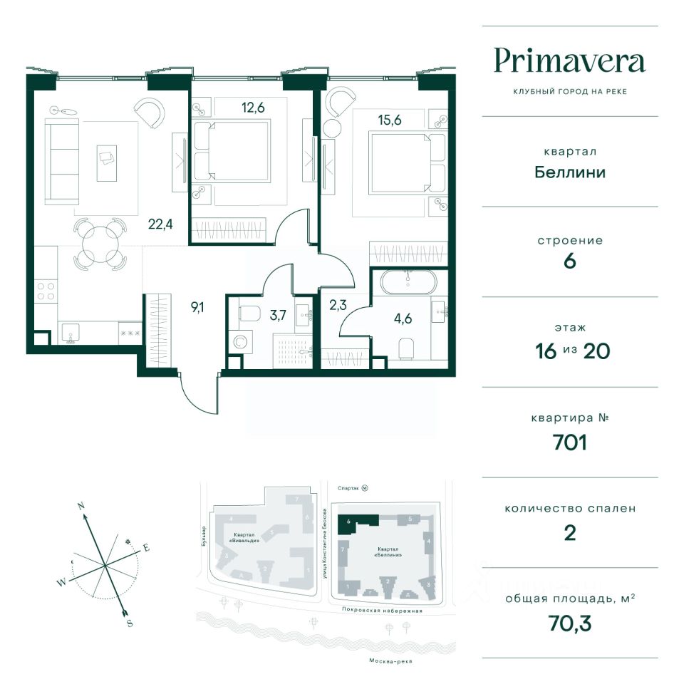 Клубный город на реке Primavera — это респектабельный проект премиум-класса на первой береговой линии Москвы-реки в экологически безупречном районе — Покровское-Стрешнево. Под панорамными окнами квартир расположился собственный экопарк, площадью 12 гектаров с сетью прогулочных дорожек, оборудованный детскими и спортивными площадками, а за ним набережная с собственным пляжем и зонами отдыха. Клубный город на реке Primavera предлагает впечатляющий выбор планировок для любого жизненного сценария: от просторных однокомнатных квартир до пентхаусов и квартир с видовыми террасами или патио. Выбирайте из 120 вариантов эргономичных планировок стандартного и евроформата. В проекте доступны квартиры площадью от 40 до 209 м², в каждой из которых открываются непревзойденные виды на реку, а угол обзора составляет 270 градусов. Из дизайнерских лобби открывается панорамный обзор на зеленый благоустроенный двор. Статусное мебелирование, потолки высотой 6 м и комфортная лаунж-зона отсылают к стилистике высококлассных пятизвездочных отелей. В Primavera есть все, что может предложить мегаполис, здесь все сосредоточено вокруг вас и настроено на ваши желания: - Всестороннее детское развитие в паре шагов от дома: 4 школы, 8 детских садов, развивающие центры с кружками и секциями. - Комфорт мегаполиса на расстоянии приятной прогулки: супермаркеты, кафе, рестораны с верандами на крыше, салоны красоты, аптеки, компании сферы услуг, многофункциональный центр для шоппинга и развлечений. - Умный дом: автоматизированное бесконтактное управление основными системами доступа, инфраструктуры и безопасности через мобильное приложение и специальные метки. Клубный город на реке Primavera выгодно отличается близостью к природе, совмещенной с насыщенной инфраструктурой.