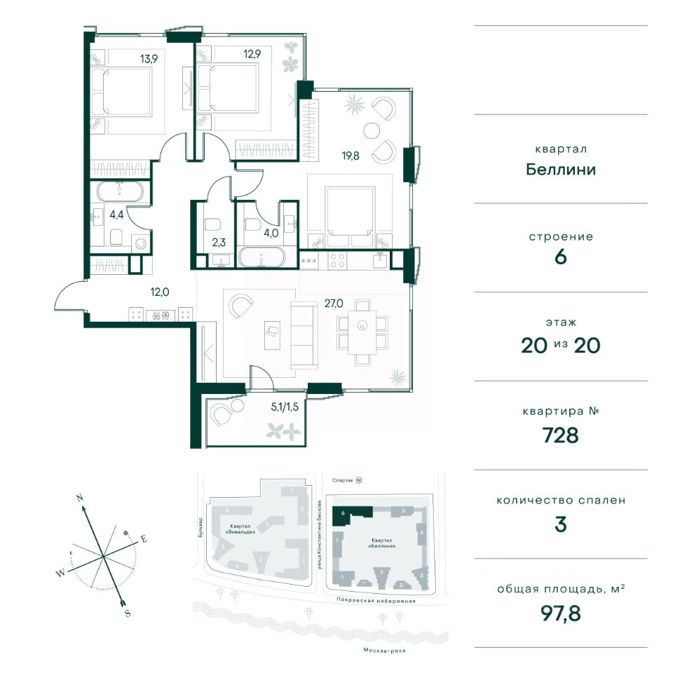 Общая площадь97,8 м²