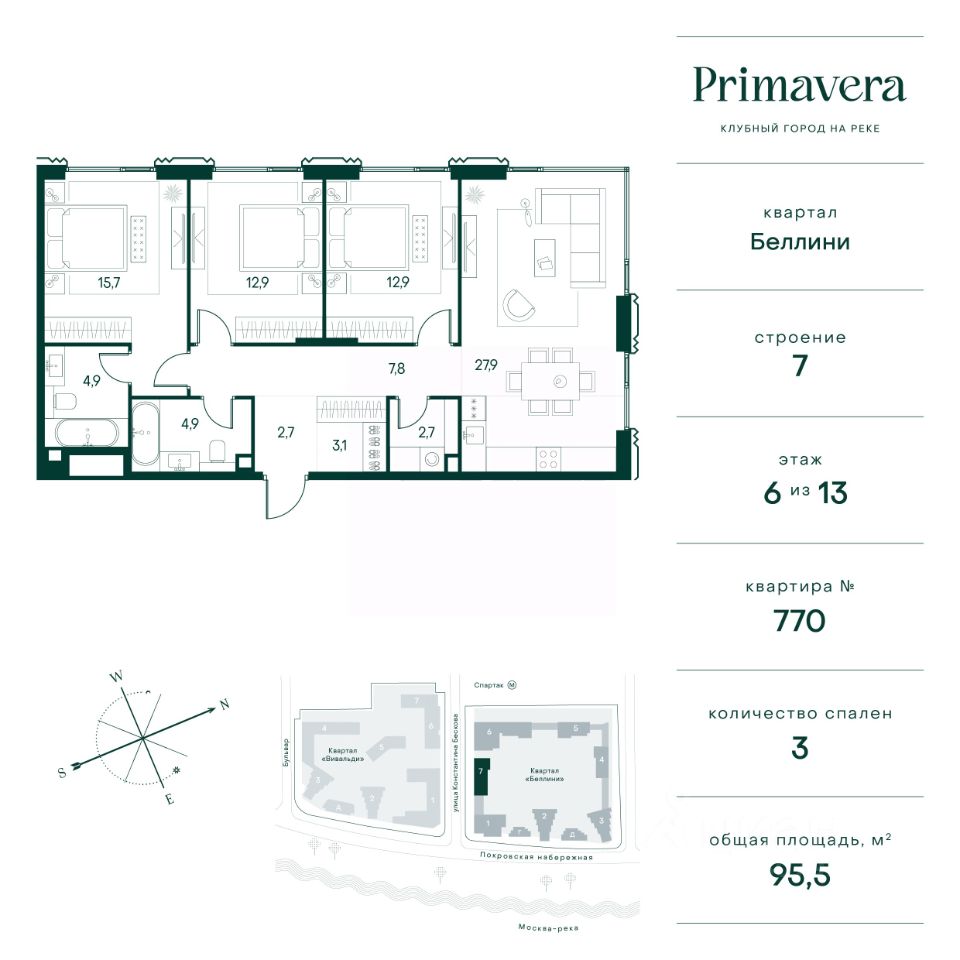 Клубный город на реке Primavera — это респектабельный проект премиум-класса на первой береговой линии Москвы-реки в экологически безупречном районе — Покровское-Стрешнево. Под панорамными окнами квартир расположился собственный экопарк, площадью 12 гектаров с сетью прогулочных дорожек, оборудованный детскими и спортивными площадками, а за ним набережная с собственным пляжем и зонами отдыха. Клубный город на реке Primavera предлагает впечатляющий выбор планировок для любого жизненного сценария: от просторных однокомнатных квартир до пентхаусов и квартир с видовыми террасами или патио. Выбирайте из 120 вариантов эргономичных планировок стандартного и евроформата. В проекте доступны квартиры площадью от 40 до 209 м², в каждой из которых открываются непревзойденные виды на реку, а угол обзора составляет 270 градусов. Из дизайнерских лобби открывается панорамный обзор на зеленый благоустроенный двор. Статусное мебелирование, потолки высотой 6 м и комфортная лаунж-зона отсылают к стилистике высококлассных пятизвездочных отелей. В Primavera есть все, что может предложить мегаполис, здесь все сосредоточено вокруг вас и настроено на ваши желания: - Всестороннее детское развитие в паре шагов от дома: 4 школы, 8 детских садов, развивающие центры с кружками и секциями. - Комфорт мегаполиса на расстоянии приятной прогулки: супермаркеты, кафе, рестораны с верандами на крыше, салоны красоты, аптеки, компании сферы услуг, многофункциональный центр для шоппинга и развлечений. - Умный дом: автоматизированное бесконтактное управление основными системами доступа, инфраструктуры и безопасности через мобильное приложение и специальные метки. Клубный город на реке Primavera выгодно отличается близостью к природе, совмещенной с насыщенной инфраструктурой.