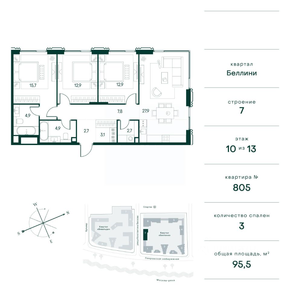 Общая площадь95,5 м²