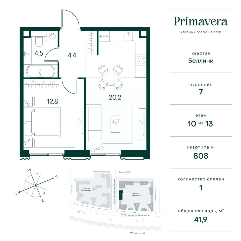 Клубный город на реке Primavera — это современный жилой комплекс премиум-класса, расположенный на первой береговой линии Москвы-реки в экологически чистом районе Покровское-Стрешнево. Под панорамными окнами квартир находится собственный экопарк с продуманной сетью прогулочных дорожек и современными детскими и спортивными площадками. За парком расположена набережная с собственным пляжем и зонами для отдыха. Клубный город на реке Primavera предлагает широкий выбор планировок для различных жизненных сценариев: от просторных однокомнатных квартир до пентхаусов и жилых помещений с террасами и патио. Выберите из 120 вариантов эргономичных планировок стандартного и евроформата. Из каждой квартиры открываются красивые виды на реку с углом обзора в 270 градусов. Дизайнерские лобби предлагают панорамный обзор на благоустроенный двор. Высокие потолки в 6 метров и качественная отделка создают атмосферу, схожую с пятизвездочными отелями. В Primavera есть всё необходимое для комфортной жизни в мегаполисе: • Образование для детей в шаговой доступности: 4 школы, 8 детских садов и развивающие центры с кружками и секциями. • Удобства на расстоянии приятной прогулки: супермаркеты, кафе, рестораны с верандами, салоны красоты, аптеки и многофункциональный центр для шоппинга и развлечений. • Умный дом: автоматизированное бесконтактное управление основными системами доступа и безопасности через мобильное приложение. Клубный город на реке Primavera выгодно сочетает комфорт городской жизни с близостью к природе. Живите в месте, где все создано для вашего удобства!