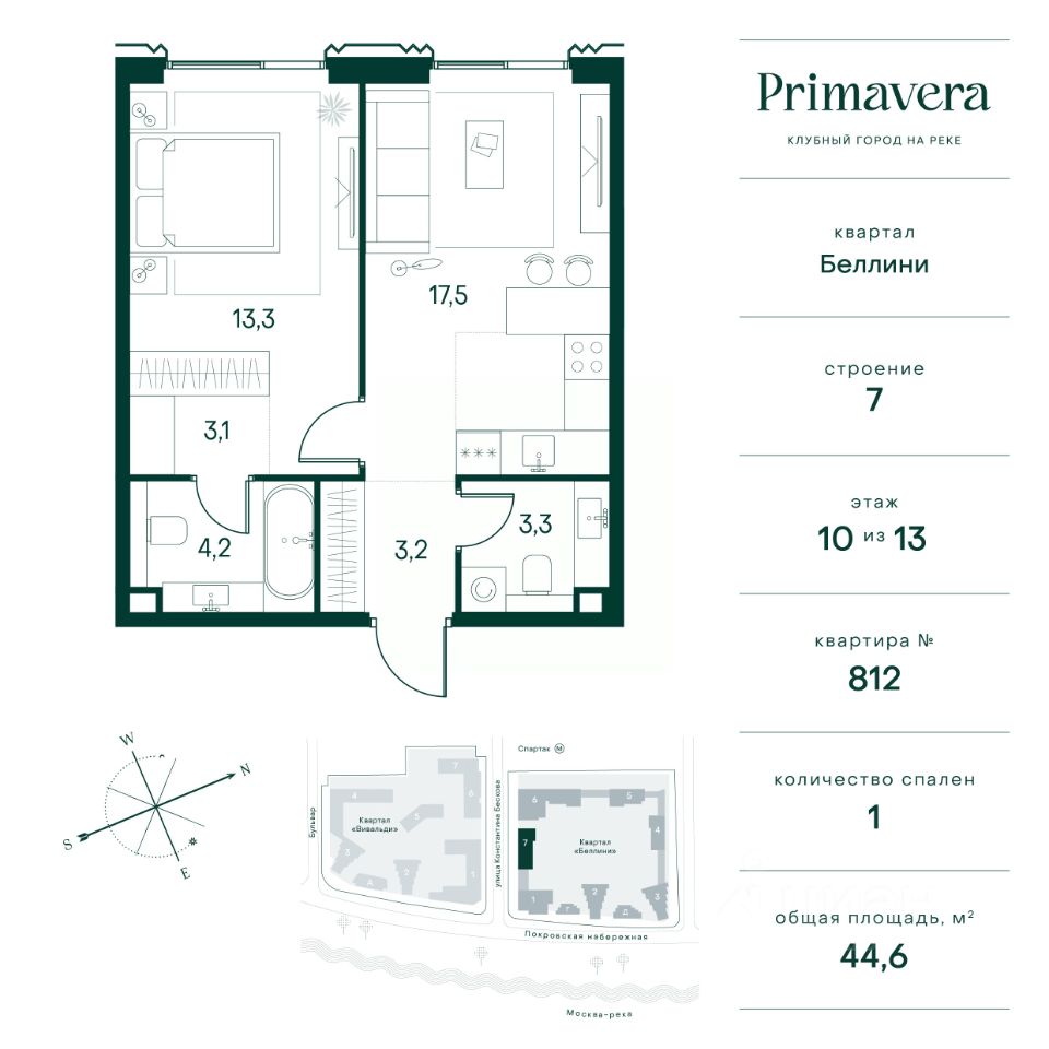 Клубный город на реке Primavera — это респектабельный проект премиум-класса на первой береговой линии Москвы-реки в экологически безупречном районе — Покровское-Стрешнево. Под панорамными окнами квартир расположился собственный экопарк, площадью 12 гектаров с сетью прогулочных дорожек, оборудованный детскими и спортивными площадками, а за ним набережная с собственным пляжем и зонами отдыха. Клубный город на реке Primavera предлагает впечатляющий выбор планировок для любого жизненного сценария: от просторных однокомнатных квартир до пентхаусов и квартир с видовыми террасами или патио. Выбирайте из 120 вариантов эргономичных планировок стандартного и евроформата. В проекте доступны квартиры площадью от 40 до 209 м², в каждой из которых открываются непревзойденные виды на реку, а угол обзора составляет 270 градусов. Из дизайнерских лобби открывается панорамный обзор на зеленый благоустроенный двор. Статусное мебелирование, потолки высотой 6 м и комфортная лаунж-зона отсылают к стилистике высококлассных пятизвездочных отелей. В Primavera есть все, что может предложить мегаполис, здесь все сосредоточено вокруг вас и настроено на ваши желания: - Всестороннее детское развитие в паре шагов от дома: 4 школы, 8 детских садов, развивающие центры с кружками и секциями. - Комфорт мегаполиса на расстоянии приятной прогулки: супермаркеты, кафе, рестораны с верандами на крыше, салоны красоты, аптеки, компании сферы услуг, многофункциональный центр для шоппинга и развлечений. - Умный дом: автоматизированное бесконтактное управление основными системами доступа, инфраструктуры и безопасности через мобильное приложение и специальные метки. Клубный город на реке Primavera выгодно отличается близостью к природе, совмещенной с насыщенной инфраструктурой.