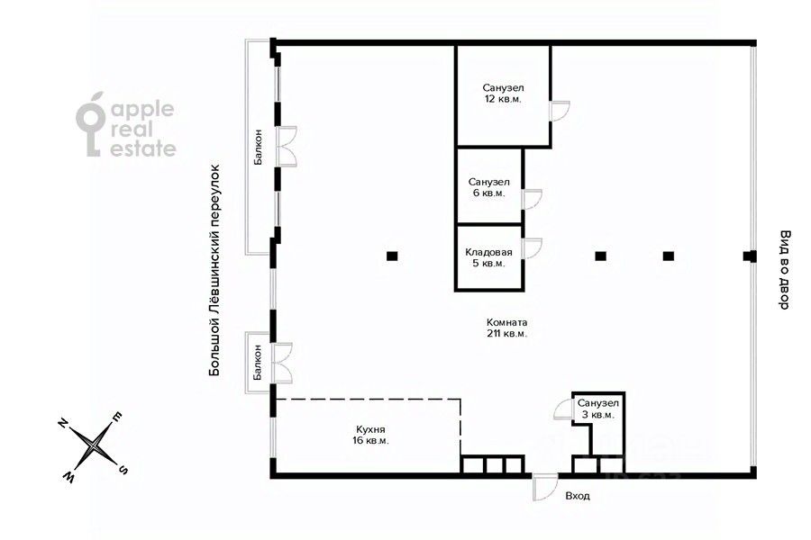 Планировка свободная, благодаря большому количеству окон возможно спланировать: просторную гостиную-столовую с зоной кухни, несколько спален, три санузла, кладовую комнату. Имеется два балкона. Высота потолков 3,3 м.