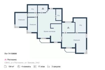 Арт. 74159686. Просторная многокомнатная квартира в Москве