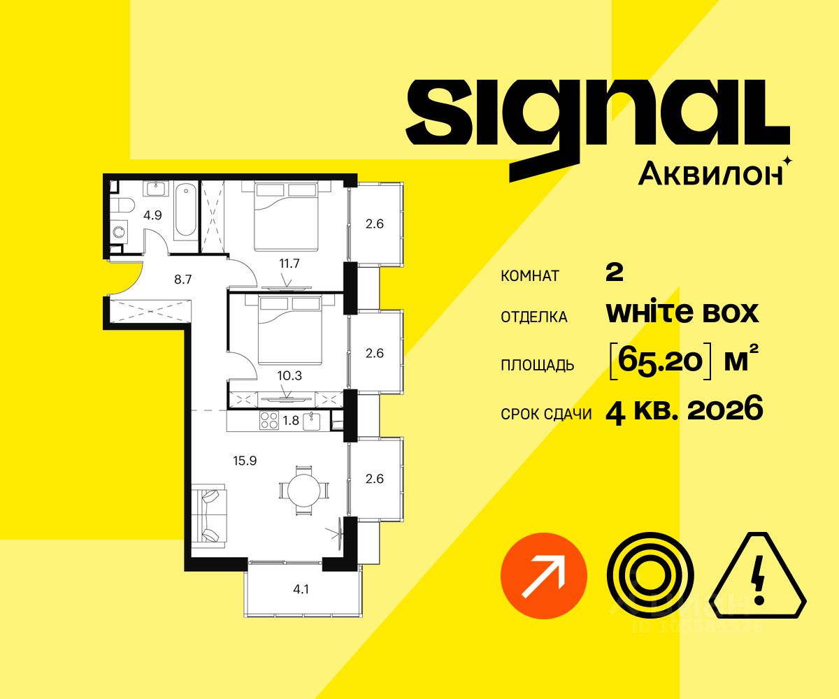 Продаются просторные 2-комнатные апартаменты на 16 этаже 23-этажного современного апарт-комплекса Signal. Срок сдачи: 4 кв. 2026 г.