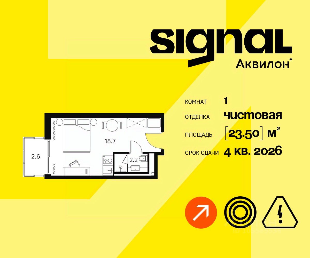 Продаются уютные однокомнатные апартаменты на 20 этаже 23-этажного современного апарт-комплекса Signal. Срок сдачи: 4 кв. 2026 г.