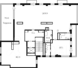 Свободная планировка, один уровень. Внутренняя площадь 347,5 кв.м., видовая терраса 69,3 кв.м., 3 небольших балкона.