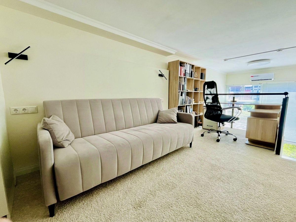 Благодаря эргономичной планировке 2-х уровневое пространство помогает вместить все необходимое для комфортной работы и отдыха. Большое окно обеспечивает обилие естественного дневного света в зонах где свет необходим (кухня, гостиная, офисная зона и зона отдыха).