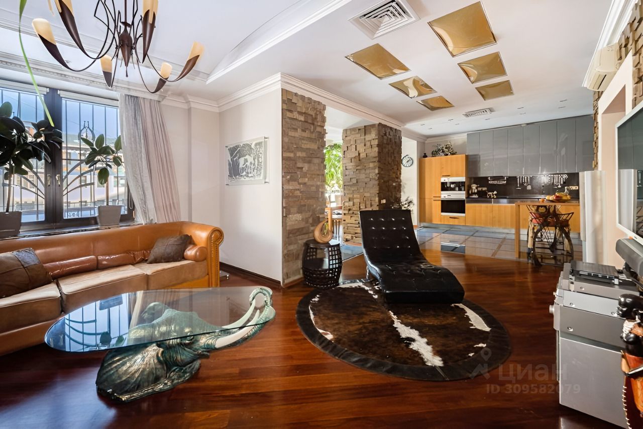 В отделке применялись исключительно качественные, дорогие европейские материалы высокого качества, такие как натуральный камень Доломит, привезенный с доломитовых гор Италии, дубовый паркет, венецианская штукатурка и тд. Встроенная кухня с техникой Miele, межкомнатные двери, люстры, так же были заказаны на лучших фабриках в Италии и Испании. Мебель, предметы интерьера, от лучших мировых производителей, со вкусом подобраны и прекрасно вписываются в общий дизайн квартиры.