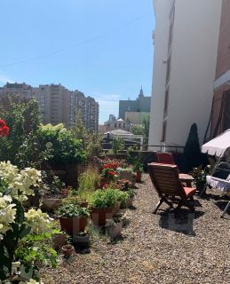 Уникальность нашей квартиры, состоит в ее местоположении и наличии террасы, где можно по загорать на шезлонгах или полюбоваться ночными огнями города за бокалом шампанского!