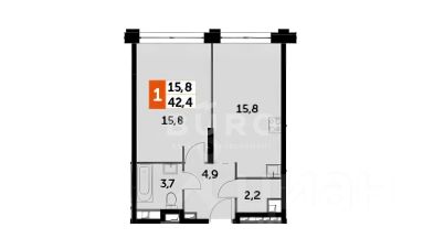 Общая площадь квартиры составляет 42,4 м². Квартира расположена на 43-м этаже нового 43-этажного монолитного дома, в районе "Хорошево-Мневники". В 10 минутах ходьбы находится ст. метро "Хорошево".