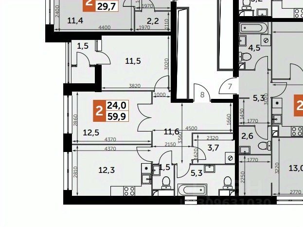 Корпус 1, Секция 5, этаж 2, кв.м.60