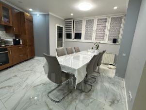 Двухуровневая квартира 26-27 этажи (27 этажный дом), Гостинная 38 кв.м и 5 просторных спален площадью от 20 до 25 кв.метров + гардеробные +личные санузлы. В квартире 5 полноценных с/у (3 ванны, 3 душевых, 5 унитазов, 3 биде, 1 гиг.душ, 4 раковины и 1 двойная раковина, сауна на 2-4 чел), просторные лоджии+3 балкона (все застекленные), несколько подсобных помещений и гардеробных, кухня просторная 22 кв.м+балкончик, игровая зона для детей 18 кв.м.