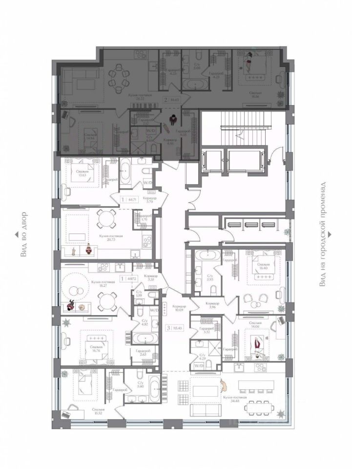 Квартира на 2 этаже в жилом комплексе премиум-класса "Преображенская площадь". Общая площадь: 88.63 кв.м.