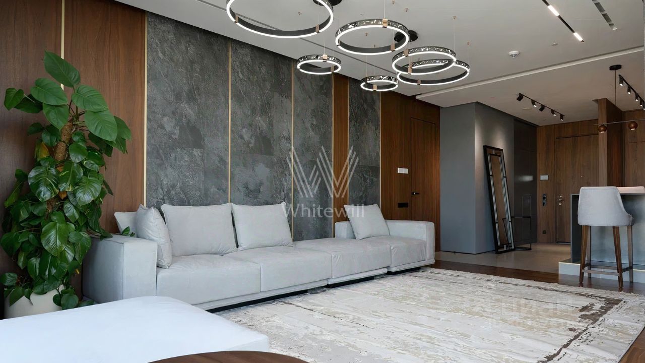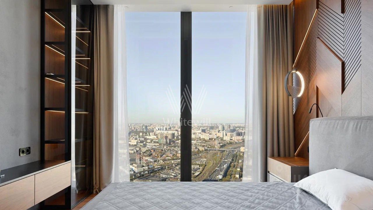 Апартаменты с одной спальней в комплексе небоскрёбов премиум-класса Neva Towers. Апартаменты расположены в башне "Т1". Выполнена дизайнерская отделка с использованием высококачественных материалов. Планировка включает кухню-гостиную с обеденной зоной, просторную мастер-спальню с собственной ванной и гардеробной, холл. Окна ориентированы на север, открываются панорамные виды на город и башни "Москва-Сити".