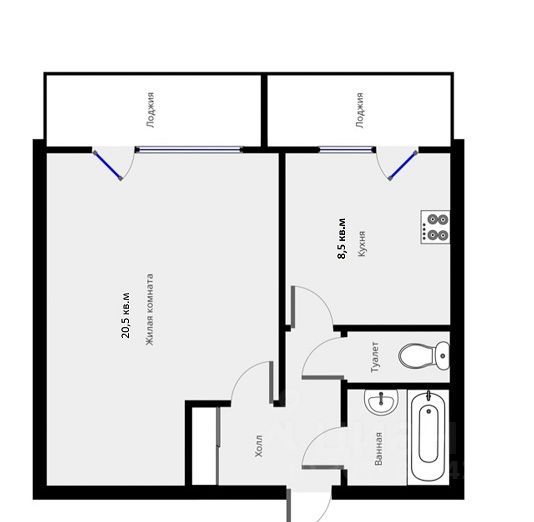 санузлах и кухне.В квартире есть две лоджии,обе застекленные.