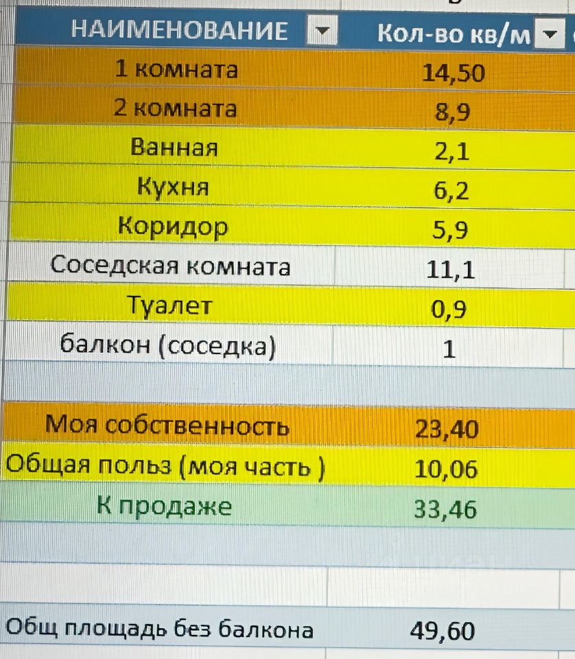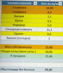 Есть прекрасная соседка с которой можно найти общий язык по различным вопросам, которой принадлежит 1 комнат( 11.1кв/м жилой пл) под 1 на фото - ее часть имеет балкон 1кв/м с торца дома. В будущем имеет мысли о продаже, так что вариант не плохой для дальнейшего расширения (полноценного выкупа 3х комнатной квартиры)
