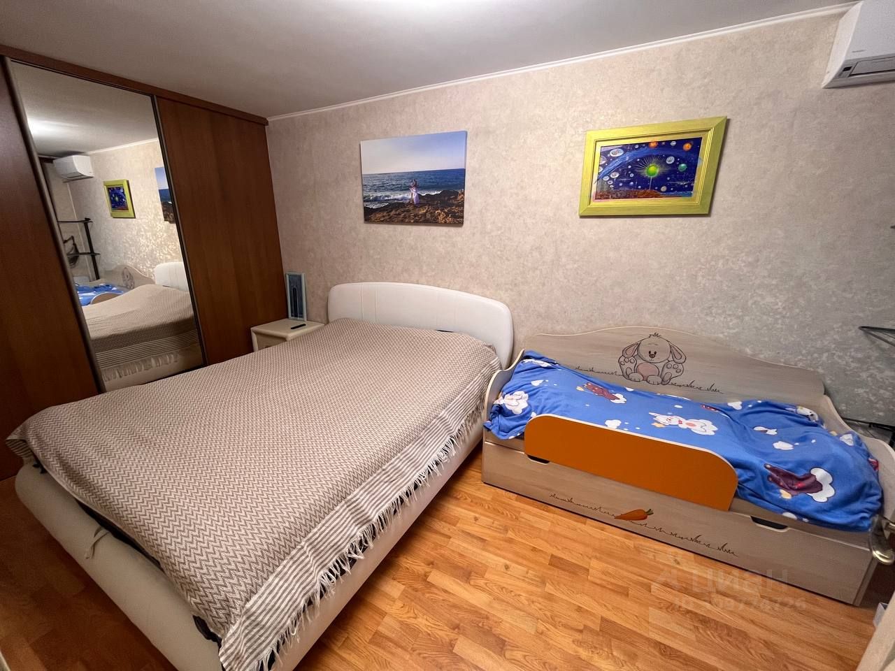В спальне установлены бризер Тион и кондиционер.