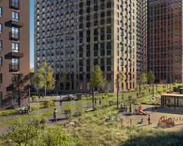 Проект задуман небольшим и уютным - в нём будет всего 4 корпуса с переменной высотой: 28, 33 и 38 этажей с подземным паркингом. Не территории мы построим детский сад на 150 малышей и школу для 350 учеников. А во дворе - зелёный парк с детскими и спортивными площадками и зонами для отдыха. На первых этажах откроются магазины, кафе и другие сервисы.