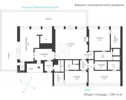 Вариант планировочного решения: кухня-гостиная с выходом на террасу, 3 спальни, каждая - с ванной и гардеробной комнатами, гостевой, с/у, постирочная, гардероб для сезонных вещей.
