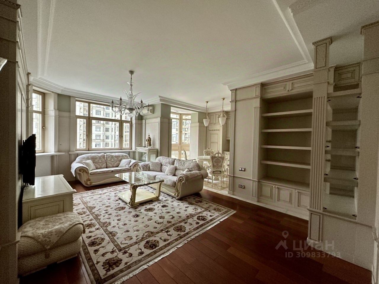 Продается просторная двухкомнатная квартира в одном из самых престижных районов Москвы в ЖК Шуваловский. Общая площадь составляет 75 кв. м, из которых 47 кв. м отведено под жилую зону, а кухня занимает 14 кв. м. Квартира расположена на 7-м этаже 17-этажного монолитного дома, построенного в 2005 году. Высота потолков — 3.2 метра, благодаря чему в квартире ощущается простор и свет.