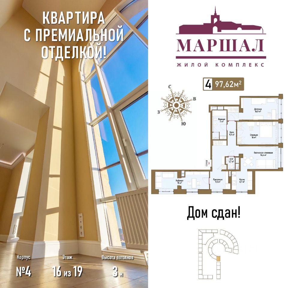 Продаётся 4-комнатная квартира в сданном доме (Маршала Рыбалко, 2К4), срок сдачи: IV-кв. 2011, общей площадью 97.75 кв.м., на 17 этаже. Готовая квартира в элитном МФК "Маршал" с премиальной отделкой "под ключ" (экологичное напольное покрытие - инженерная доска Greenline и керамогранит, высококачественные системы кондиционирования и сантехническое оборудование), выполненной европейскими специалистами по эксклюзивным дизайн-проектам, подчеркнет высокий статус владельца.