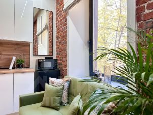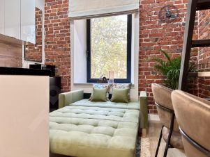 Предлагаем Вашему вниманию студию после ремонта в новом комплексе. Выполнен качественный дизайнерский ремонт, грамотная планировка. Полностью меблирован и укомплектован техникой. Качественное покрытие на полу- кварц винил, стены покрашены английской водостойкой краской, дизайнерская кладка кирпича. Два уровне, на первом уровне зона гостиной, кухни, на втором оборудована зона отдыха для сна. Комплекс сам новый, только закончили ремонт, территория дома огорожена и охраняема, есть собственная парковка.