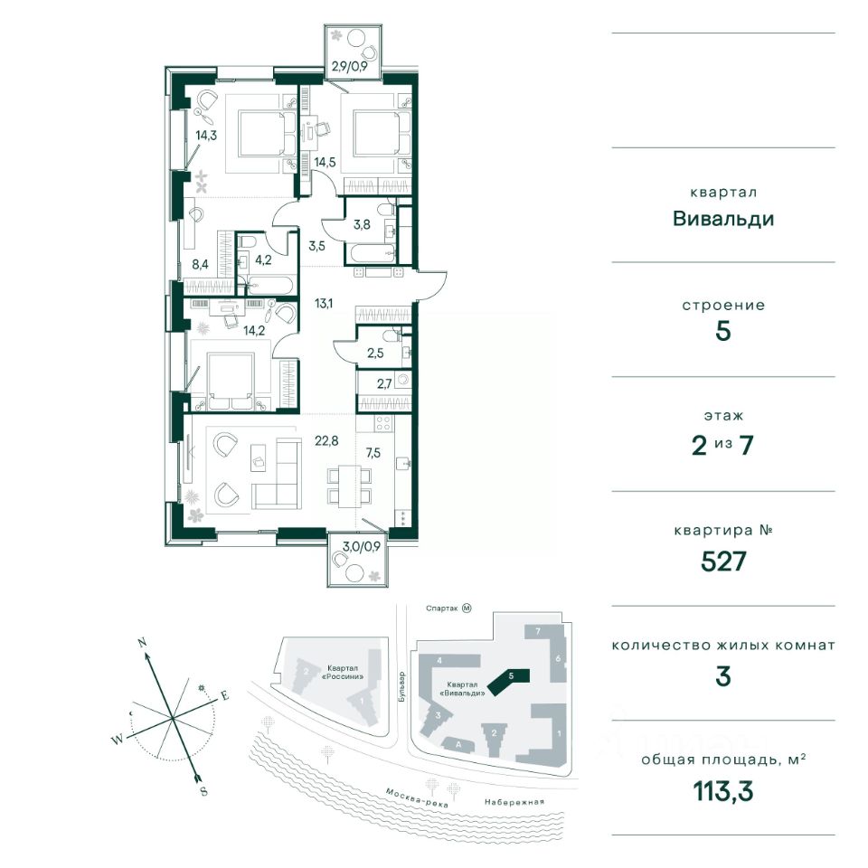 Общая площадь113,3 м²