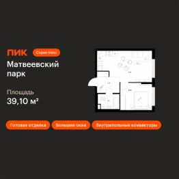 Продаётся 1-комн. квартира площадью 39,1 кв.м на 14 этаже 14 этажного дома (Корпус 4.8, Секция 5) проекта ПИК Матвеевский парк. Светлый просторный подъезд на уровне земли, функциональная планировка, большие окна, c отделкой.