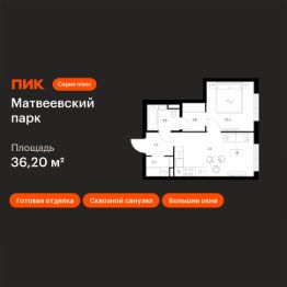 Продаётся 1-комн. квартира площадью 36,2 кв.м на 14 этаже 14 этажного дома (Корпус 4.8, Секция 5) проекта ПИК Матвеевский парк. Светлый просторный подъезд на уровне земли, функциональная планировка, большие окна, c отделкой.