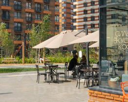 У проектов будет общая инфраструктура и благоустроенная территория. Уже открыта часть пешеходного бульвара, который строится по проекту британского бюро. Здесь можно гулять после работы, играть с детьми, заниматься спортом и отдыхать у сухого фонтана с ночной подсветкой. В будущем в кластере появится пешеходный мост, который соединит жилые кварталы, и комьюнити-центр "ОМА" с магазинами, кафе, местами для спорта, встреч и общения.