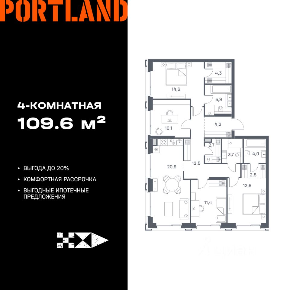 Продаётся 4-к. квартира, 21 этаж в жилом комплексе бизнес-класса Portland от девелопера FORMA. ЖК расположен на берегу Москвы-реки в северной части района Печатники в акватории Южного речного порта.