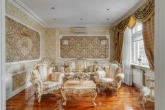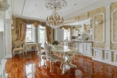 ID 62907: Элегантная и невероятно светлая четырёхкомнатная квартира 151 кв.м в районе Кутузовского проспекта. Пространство квартиры функционально спланировано: просторная студия площадью 55 кв.м, 3 изолированные спальни, 2 ванные комнаты, подсобная комната с окном, постирочная и гардеробная. Интерьер выдержан в стиле классики. Все отделочные работы производились по эксклюзивному проекту от известного дизайн-бюро. В квартире 9 окон, все выходят во двор. Идеальную тишину обеспечивают деревянные стеклопакеты финского бренда Tiivi Oy. Квартира оснащена сантехникой Porshe designe, ванной Teuko, итальянской кухонной мебелью с применением эксклюзивных гранитных рабочих поверхностей и мраморных столешниц итальянского бренда Tulli Zucarni. Установлена сплит-система климат-контроля Mitsubishi Electric, систему охранно-пожарной сигнализации Vista Ademco, оптоволоконную интернет сеть. Разрешение на дополнительные 20кВт электроэнергии. Потолки 3 метра. Дом 1956 года постройки, расположен в тихом, уютном дворе, где недавно была проведена реконструкция, был разбит японский сад и оборудованы детские площадки.