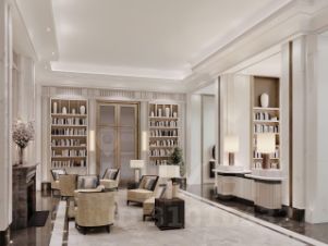 Архитектурное бюро Олега Клодта разработало дизайн общественных пространств ФАЙВ ТАУЭРС: гранд-лобби, камерную библиотеку c камином и лифтовую зону. Все необходимые сервисы сосредоточены на первых этажах небоскрёба: кафе, винотека, салон красоты, фитнес и детский клуб. Приватный Sky Club 49 — респектабельный лаундж с открытой террасой и ограниченным доступом на 49 этаже — только для резидентов.