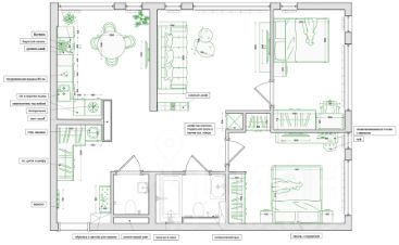 Квартира очень светлая (9 высоких окон), окна выходят во двор на парк. Продуманная до мелочей планировка: мастер-спальня, детская/кабинет, гостиная, кухня, 2 с/узла. Предусмотрено множество мест для хранения, вся мебель произведена на заказ. Несколько сценариев освещения для каждой комнаты. Теплые полы в зоне прихожей и санузлах, датчики протечки воды, водонагреватель.