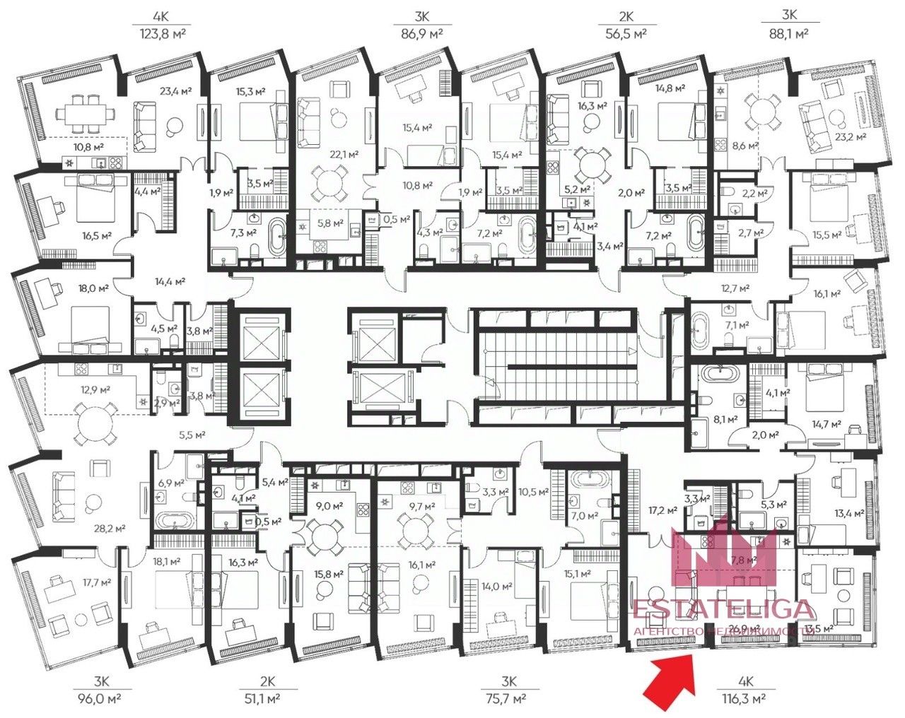Id 48542. ПРОДАЕТСЯ ЕВРО-ЧЕТЫРЕХКОМНАТНАЯ КВАРТИРА С ВИДОМ НА ВО ДВОР! 1 ОЧЕРЕДЬ - БЕЗ ОТДЕЛКИ!