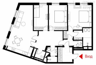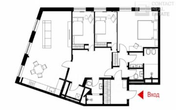 Угловая квартира представлена в свободной планировке. Можно спланировать просторную кухню-гостиную и три спальни со своими ванными и гардеробными комнатами.
