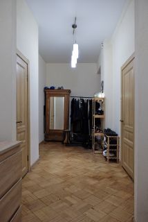 Общая площадь 92.7 кв.м, жилая - 55.5 кв.м. В квартире произведен косметический ремонт с полной заменой проводки. Высокие потолки 3,5 м, большой светлый коридор, раздельные комнаты, вместительная кухня. Старинный дубовый паркет отреставрирован. Есть отдельная дверь с выходом на лестницу "черного хода" со своим ключом.