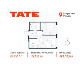 Продается 1-комнатная квартира от застройщика в ЖК премиум-класса TATE на 22 этаже. Общая площадь 41,1 м². Отделка предчистовая (white box). 1 санузел. Вид из окна на Парк Сокольники. Башня A.