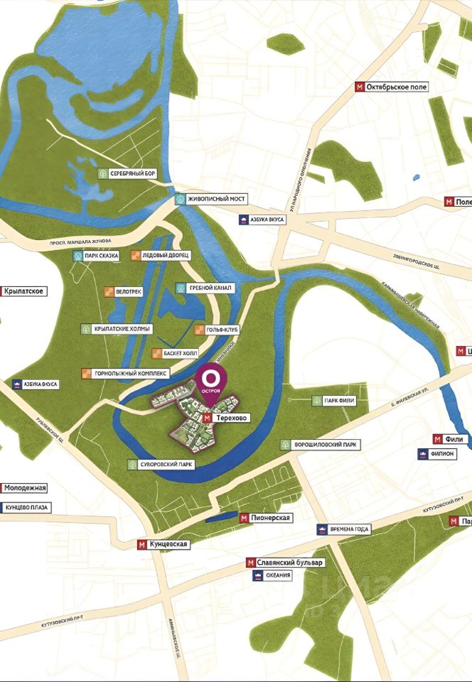 О ЖК: уникальная для Москвы локация: со всех сторон река и заповедник (650 га паркового пространства и круговая панорама реки), которыми ЖК отделен от города. При этом до Москва-Сити 10 мин на авто, 15 мин до Садового кольца, выезд на Рублево-Успенское и Новорижское шоссе.