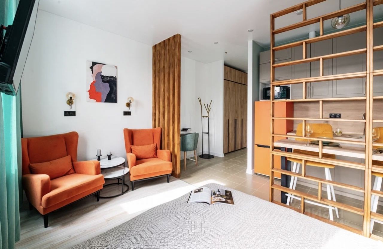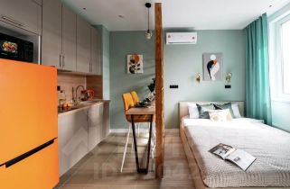 Студия полностью меблирована, оснащена качественной бытовой техникой и элегантным декором (все входит в стоимость).