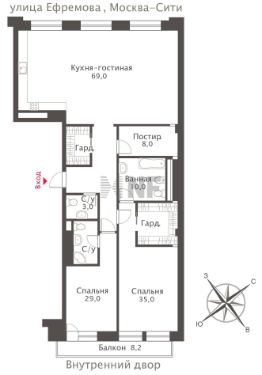 Свободная планировка позволяет предусмотреть просторную кухню-гостиную, мастер-спальню с санузлом и гардеробной, вторую спальню с полноценным санузлом, гостевой санузел, постирочную и гардеробную для верхней одежды.