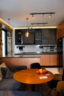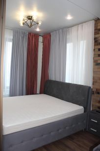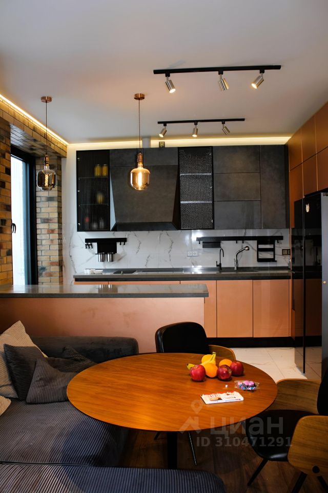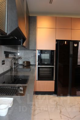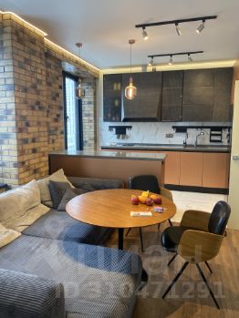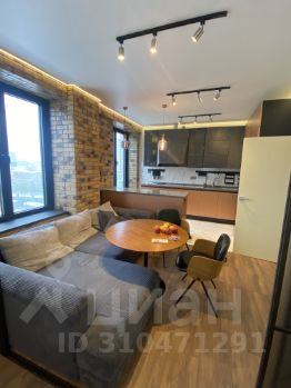 Планировка: гостиная с зоной кухни, спальня разделенная стеклянными дверьми от зоны гостинной, мастер-спальня с гардеробной, детская спальня , 2 сан.узла. Выполнена отделка в современном стиле с применением натуральных материалов. Квартира оборудована мебелью бытовой техникой премиум-класса. Из окон открывается красивый вид в сторону "ВТБ-Арены" и на панораму высоток г. Москвы.