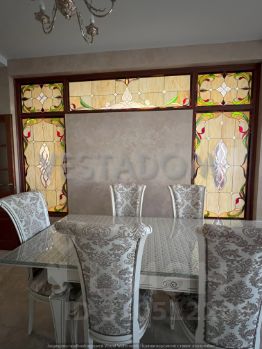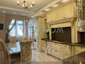 В квартире выполнен дизайнерский ремонт в классическом стиле с использованием премиальных материалов и авторских элементов декора. Витражи Тиффани, напольная мозаика ручной работы, паркетная доска из массива американского ореха 18 мм. Вся встроенная мебель и межкомнатные двери - массив дуба. Настенные и потолочные светильники из Италии и Испании, санузлы оборудованы немецкой сантехникой Villeroy & Boch.