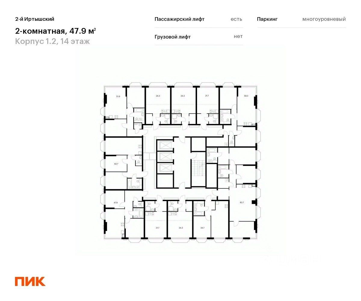 Продаётся 2-комн. квартира площадью 47,9 кв.м на 14 этаже 19 этажного дома (Корпус 1.2, Секция 2) проекта ПИК 2-й Иртышский. Светлый просторный подъезд на уровне земли, функциональная планировка, большие окна, c отделкой.