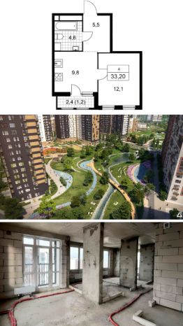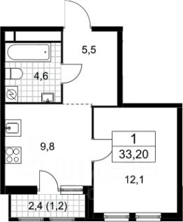 Продается однокомнатная квартира 558 - 33,2 м2.