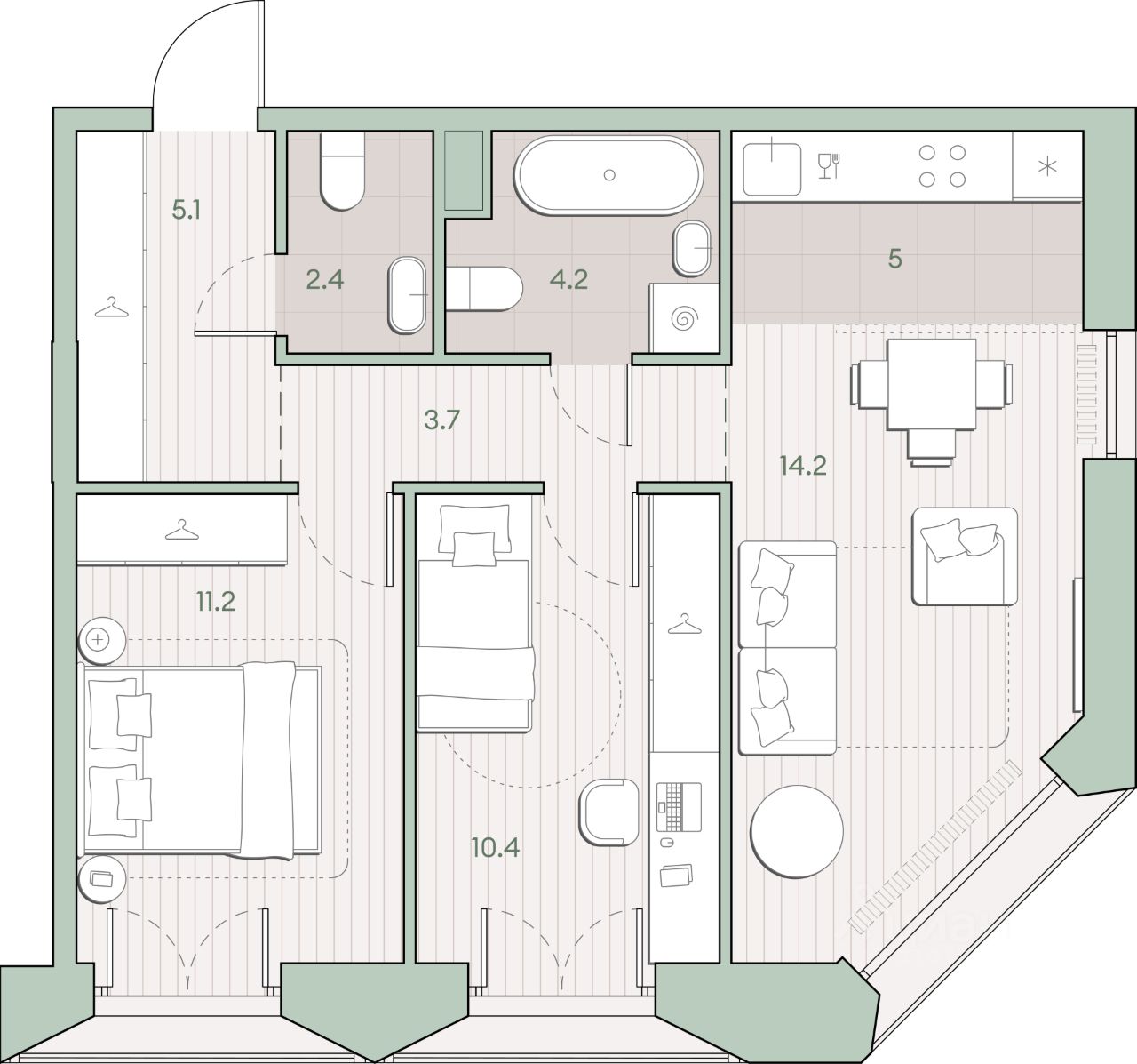 Продаётся 2-комнатная квартира общей площадью 56.2 кв.м. без отделки. Квартира расположена на 2 этаже корпуса 5.6 в жилом комплексе бизнес-класса "Среда на Лобачевского" в пешей доступности от метро "Аминьевская".