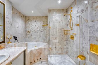 Практичное планировочное решение, ни один квадратный метр не остался без внимания: светлая гостиная комната с выделенной обеденной зоной, функциональная кухня с камином, две спальных комнаты, кабинет, совмещенный санузел, где оборудованы душевая и ванная, много встроенных зон для хранения. По желанию в квартире также можно предусмотреть гостевой санузел.